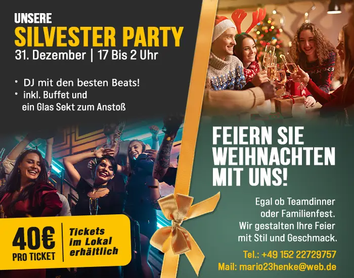 Wir laden Sie herzlich ein, den Jahreswechsel gemeinsam mit uns in festlicher Atmosphäre zu zelebrieren und das neue Jahr mit Schwung zu beginnen.